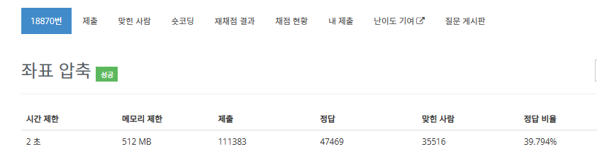 이렇게 2가지 방향으로 설정을 할 수 있고, 이 문제에서는 오름차순을 이용해서 제일 낮은 값이 queue의 first에 나오게끔 이용했다. 그렇게 되면 queue에 pop되는 순서대로 0, 1, 2, 3, 4, 5 ... 등의 압축된 좌표를 나타낼 수 있다.
