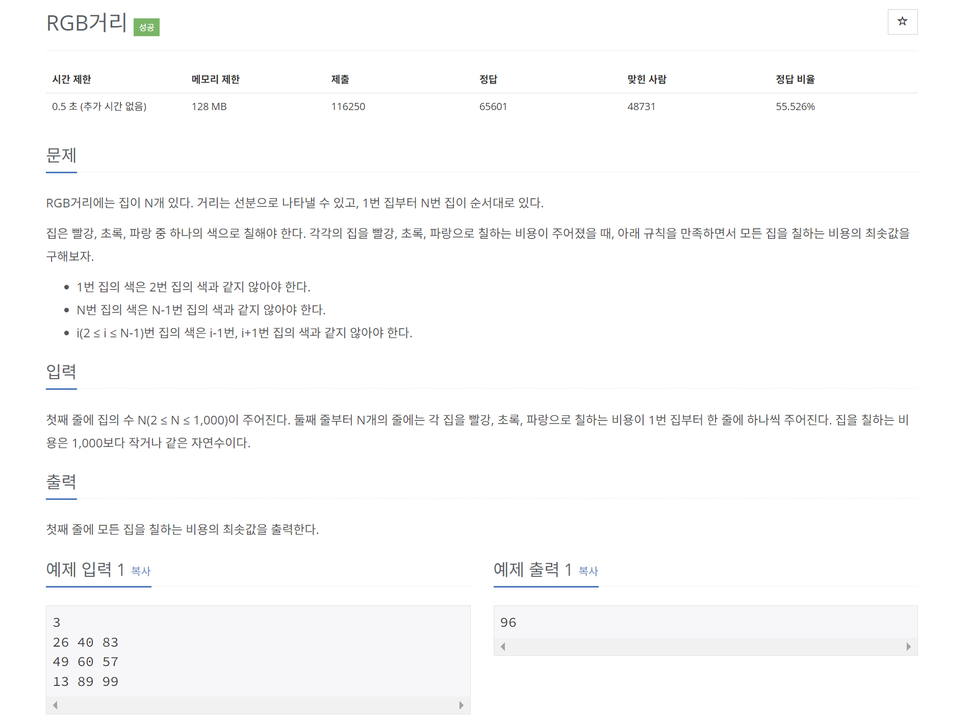 [백준/C++] 1149번 RGB 거리 (DP) 본문