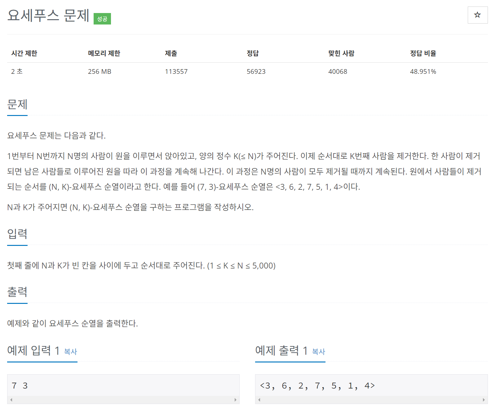 https://www.acmicpc.net/problem/1158