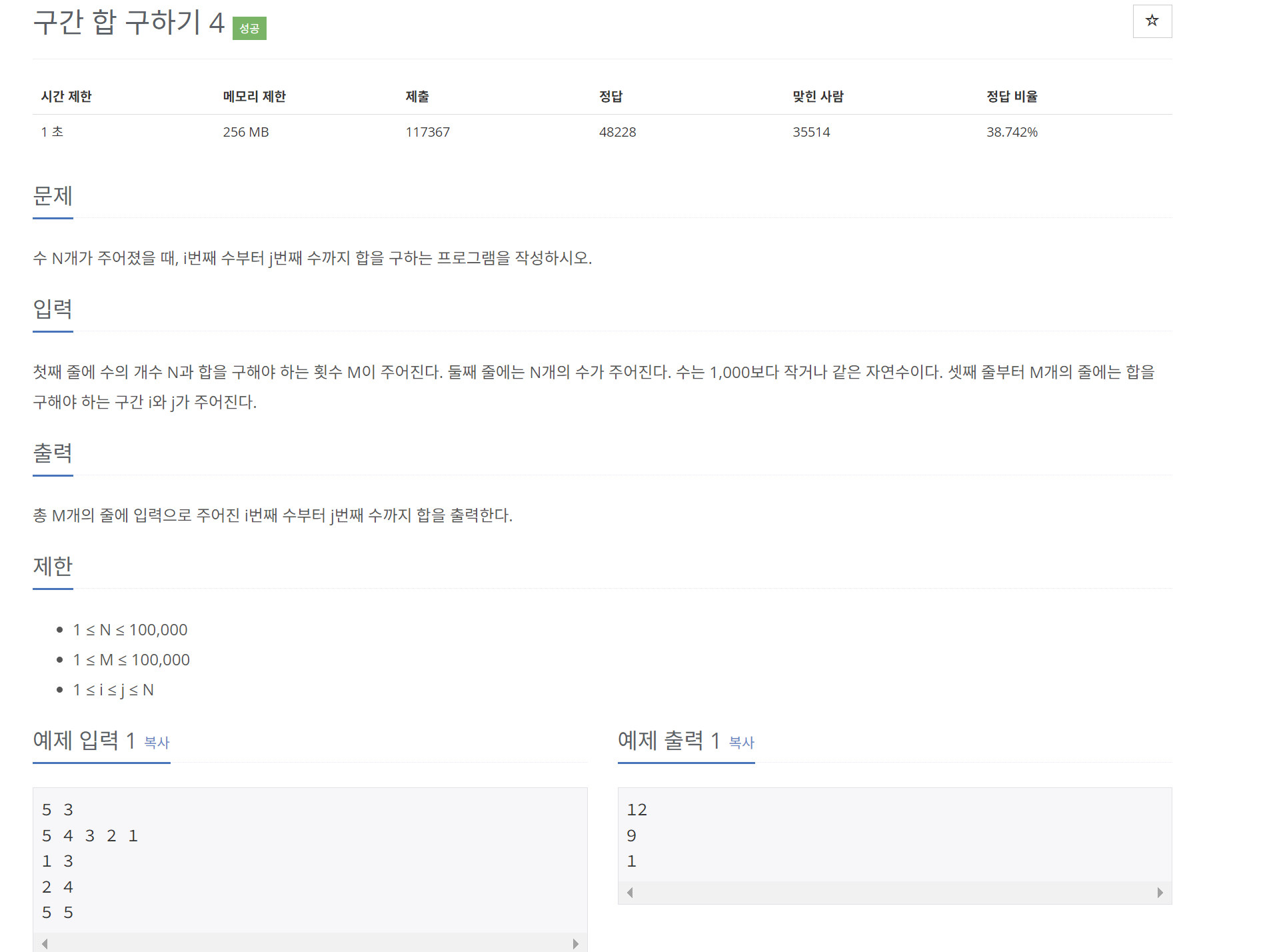 백준 11659번 구간 합 구하기 4