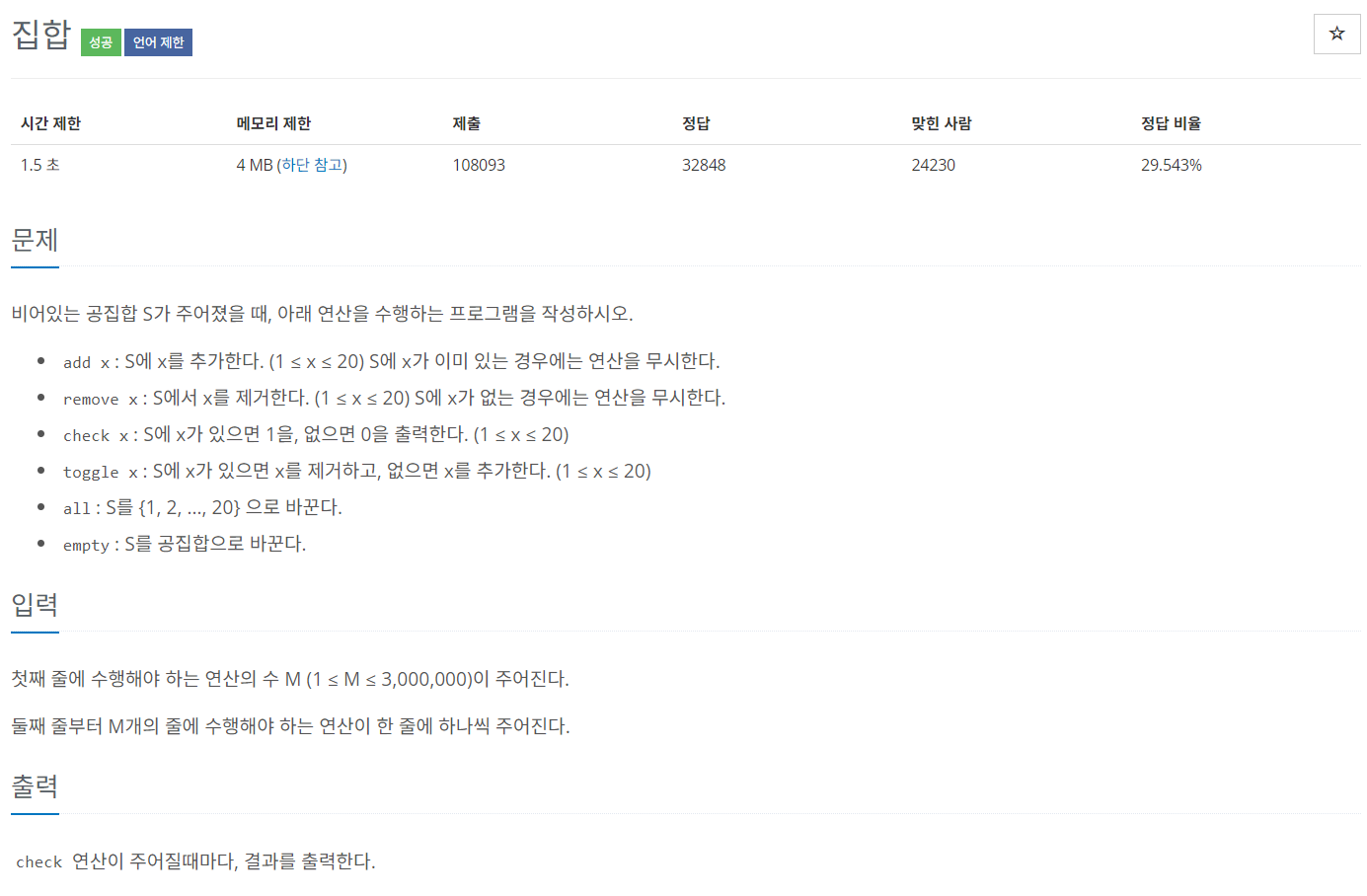 [백준/C++] 11723번 집합 - (1) (배열 사이즈, deque 사이즈 변동) 본문
