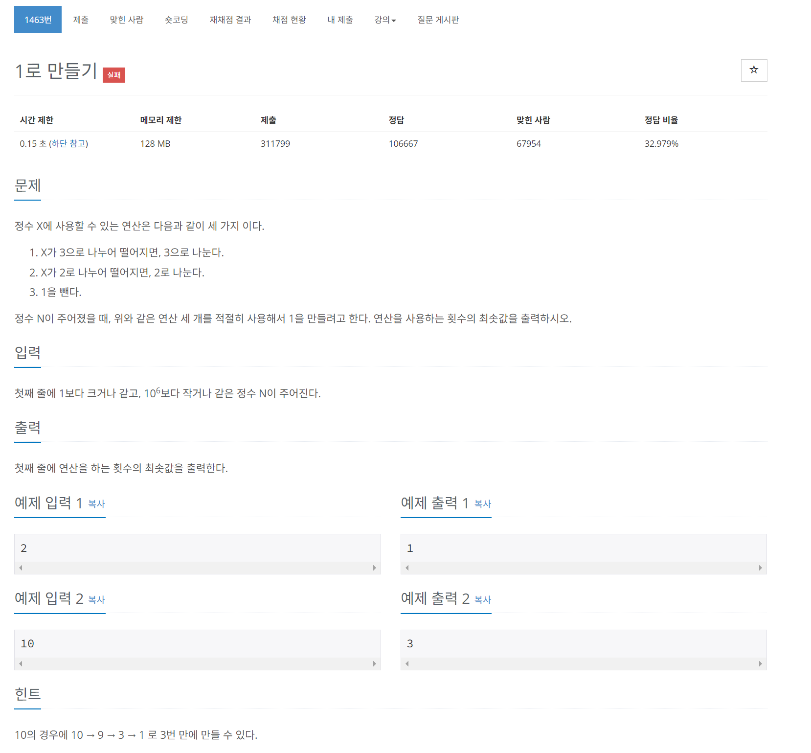 https://www.acmicpc.net/problem/1463