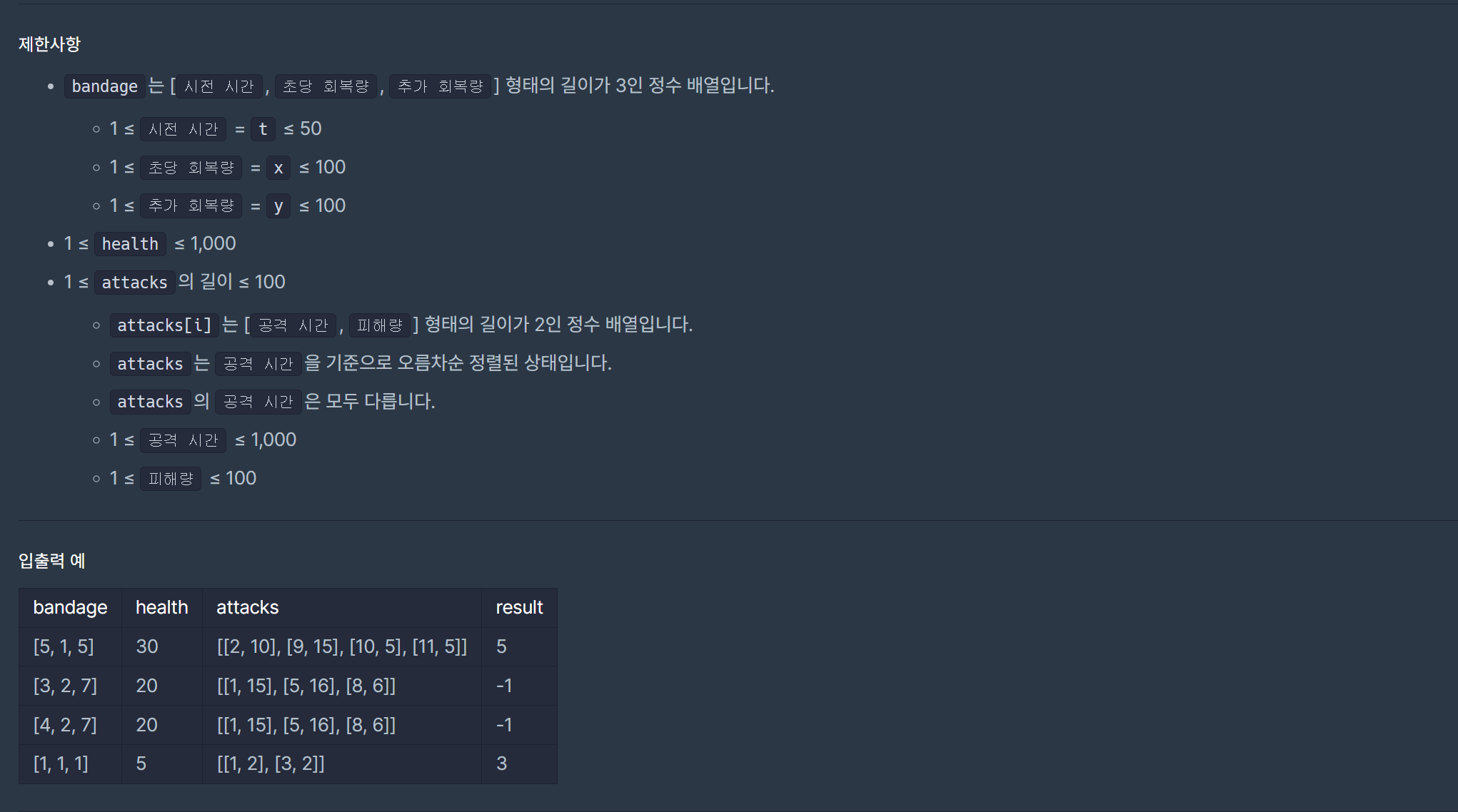 프로그래머스 PCCP 붕대감기